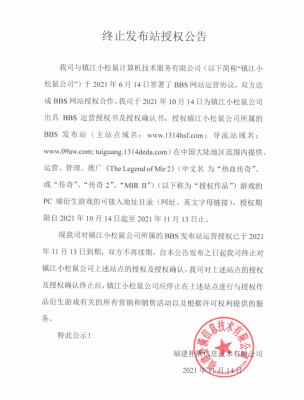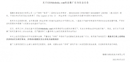 202108-30维权打击公告(二) 福建扑满信息技术有限公司(以下简称“我司”)经株式会社传奇IP 、RENAISSANCE INVESTMENT MANA...
